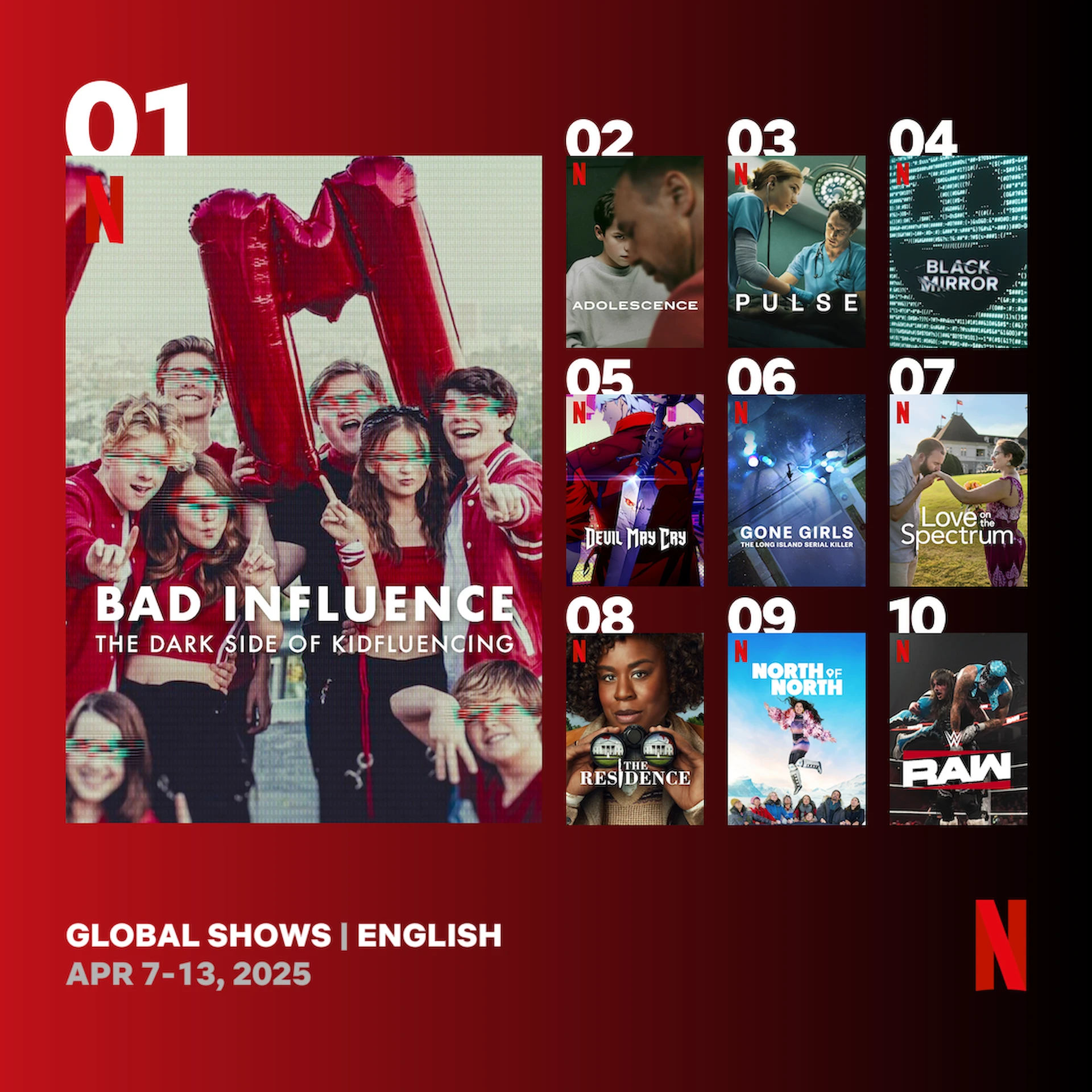 2025년 4월 7일부터 13일까지 넷플릭스 글로벌 Top 10을 소개합니다.